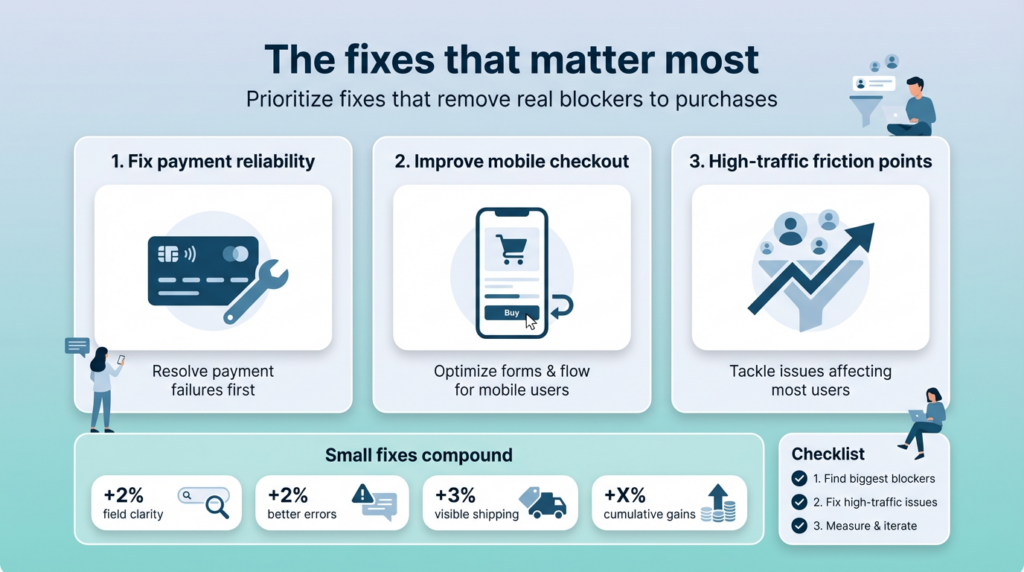 These individually are minor annoyances. Together, they make checkout feel harder than it needs to be. And when something feels hard, people give up.