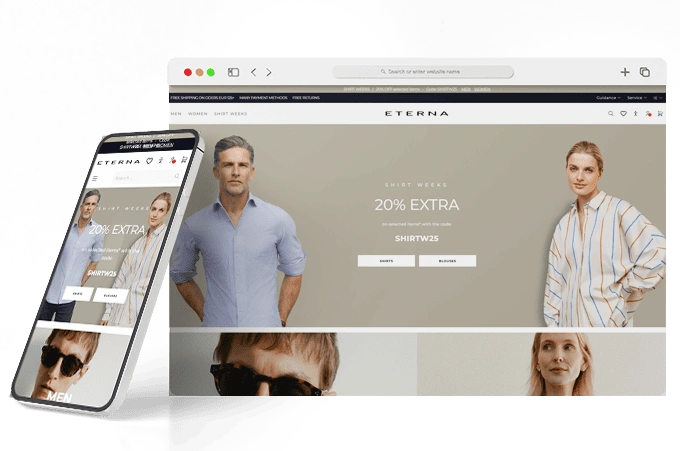 ETERNA, ein führender Name in der Premium-Modebranche, ist bekannt für seine hochwertigen Hemden, Blusen und Business-Kleidung. Um den guten Ruf der Marke in Bezug auf Handwerkskunst und Nachhaltigkeit zu ergänzen, wollte ETERNA seine E-Commerce-Plattform verbessern. Das Ziel war es, den Kunden ein nahtloses und ansprechendes Einkaufserlebnis zu bieten, das das prestigeträchtige Image der Marke widerspiegelt und die Kundenzufriedenheit steigert.